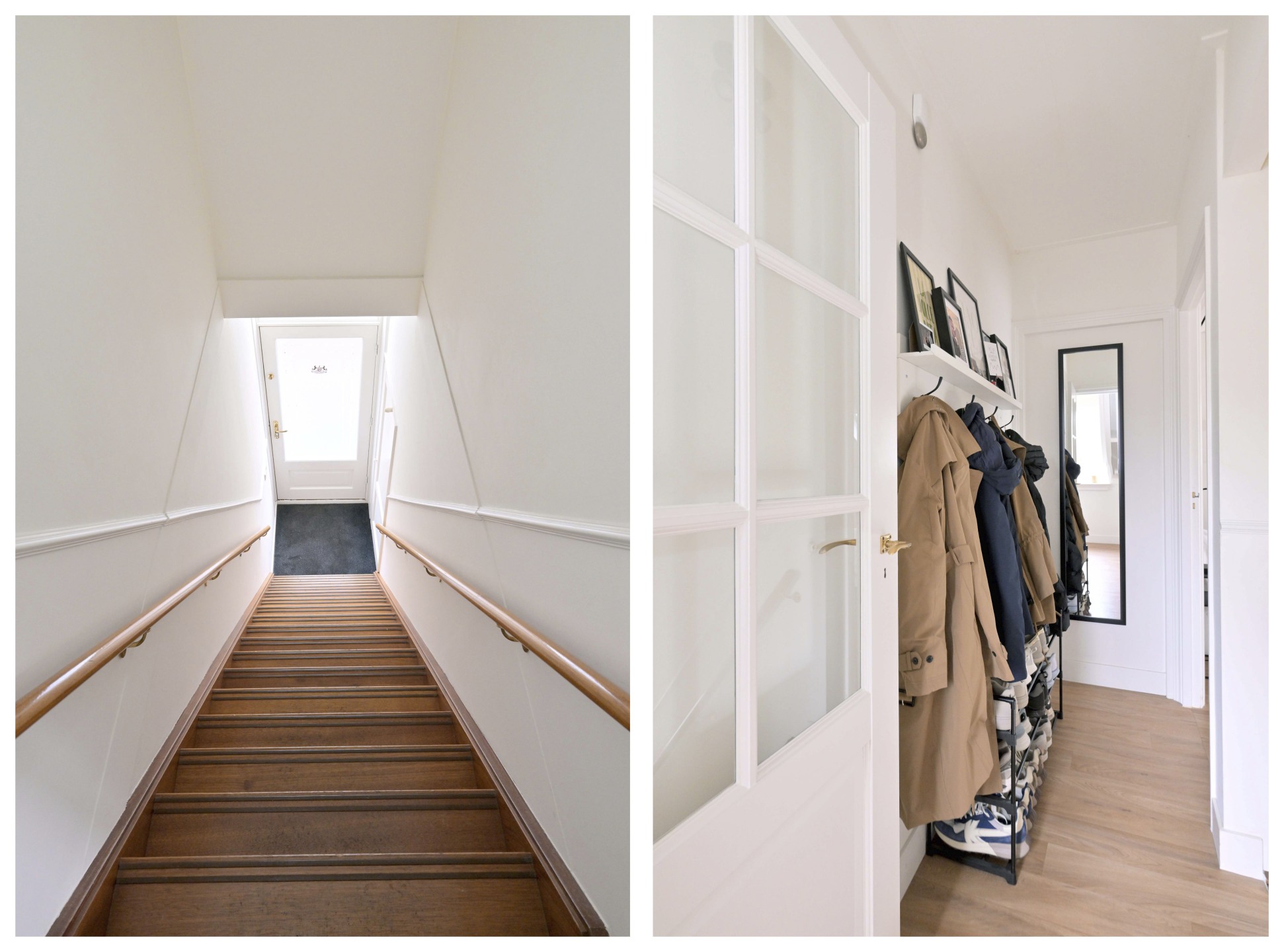 Eigen entree op de begane grond, trapopgang en overloop. Royale woonkamer met dakkapel en moderne keuken die in 2022 is voorzien van nieuwe bladen, spoelbak en kraan, combi oven/magnetron en afzuigkap. Er is een 5-pits gaskookplaat en een afwasmachine. Vanuit de woonkamer toegang tot het grote balkon (15 m²) met elektrisch zonnescherm. Ruime slaapkamer met vaste kast. Luxe badkamer met ligbad, inloopdouche, wc, wastafelmeubel en aansluitingen voor wasmachine en droger. Vanuit de slaapkamer met een vlizotrap toegang tot de zolder (11 m²) met CV-opstelling en veel bergruimte.