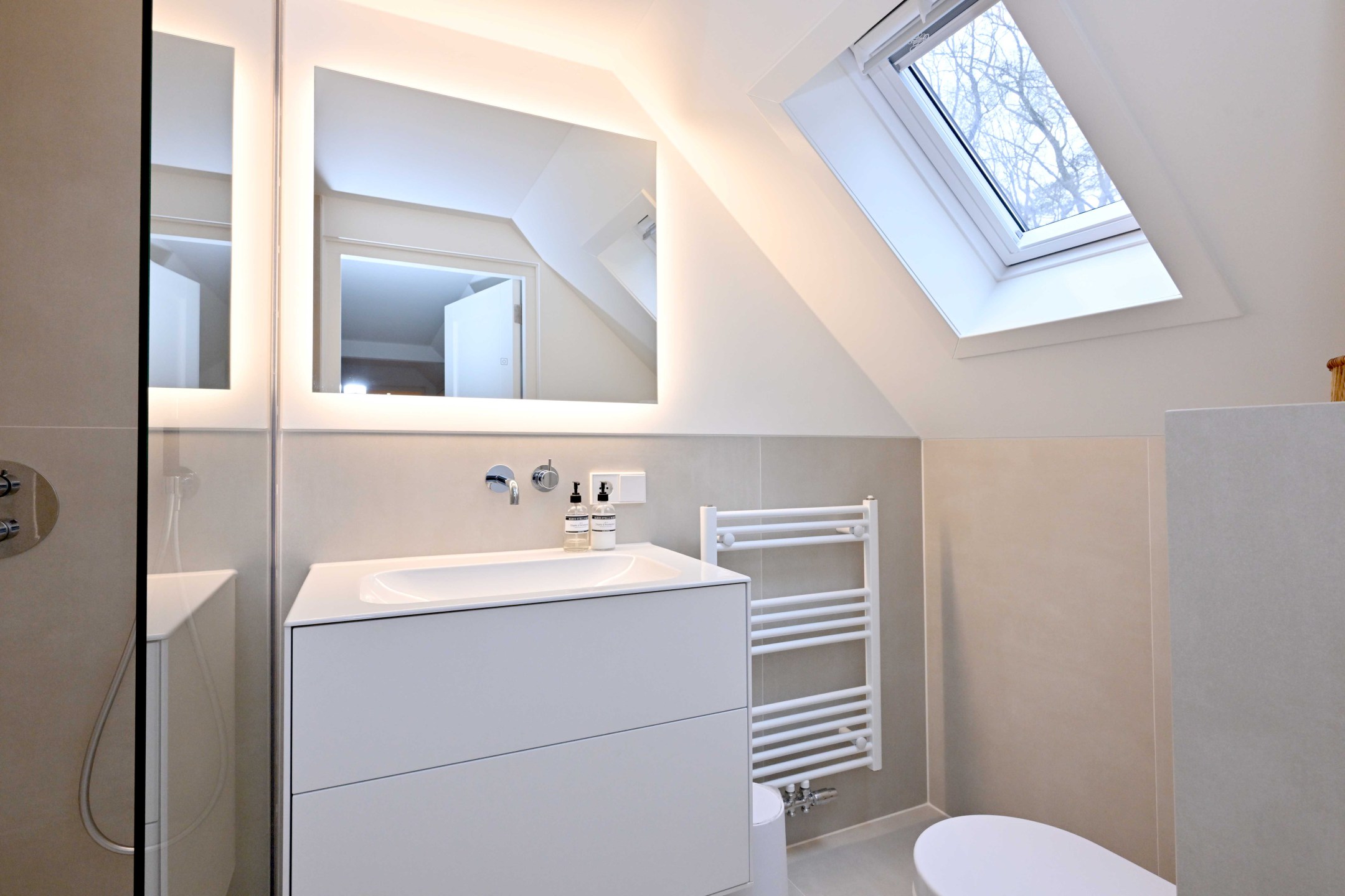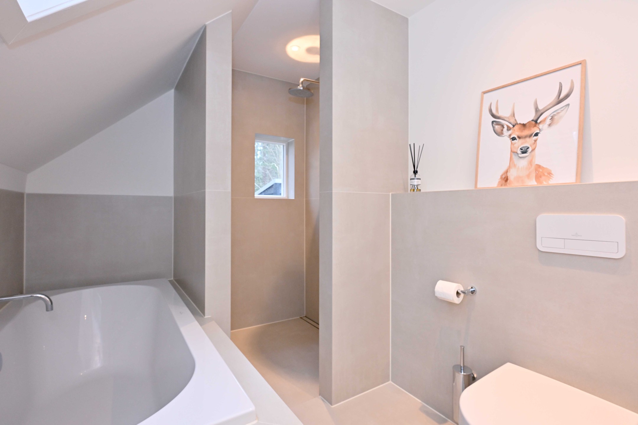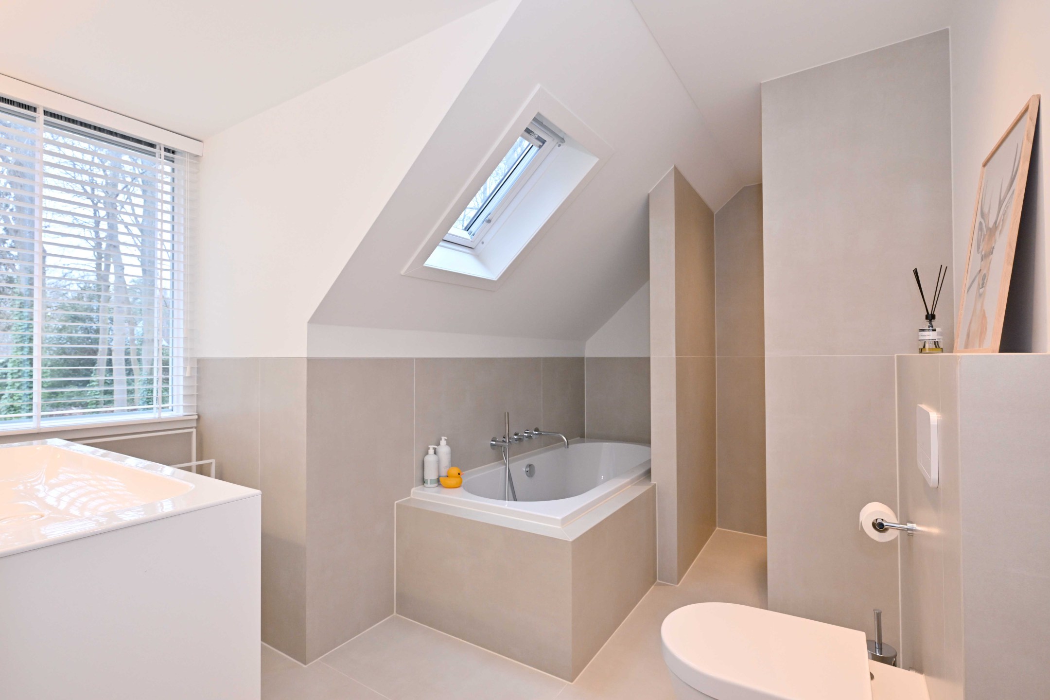 Ruime en lichte overloop met dakkapel. Hoofdslaapkamer met dakkapel en eigen badkamer met inloopdouche, wc en wastafelmeubel. De overloop en de hoofdslaapkamer hebben handgemaakte kleedkasten (Kloppenberg 2025). Slaapkamer met dakkapel, derde slaapkamer en een moderne badkamer met ligbad, inloopdouche, wc en wastafelmeubel.